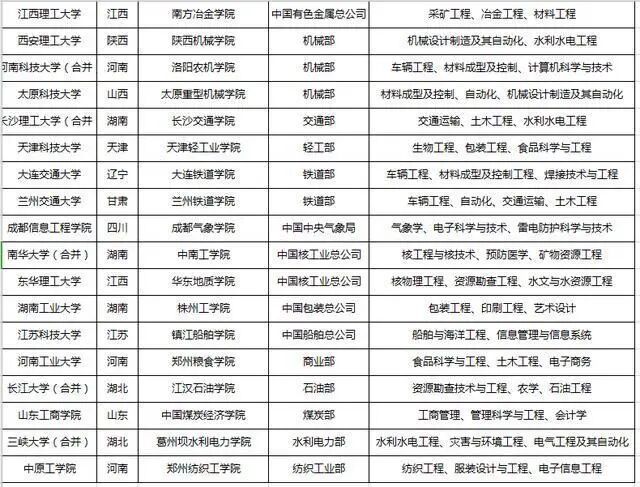 1990 年以前,中央部委直属高校一共有 368 所。随着国家 “211工程” 的实施,大学分化重组,有 215 所高校划给地方,归省市(区)直属,其中的大部分进入了 “一本”,少部分成为了 “二本”。这些二本院校,由于投入早,办学久,底子厚,基础扎实,在某个专业领域里有很强的实力。部分二本院校的过去情况见下表: