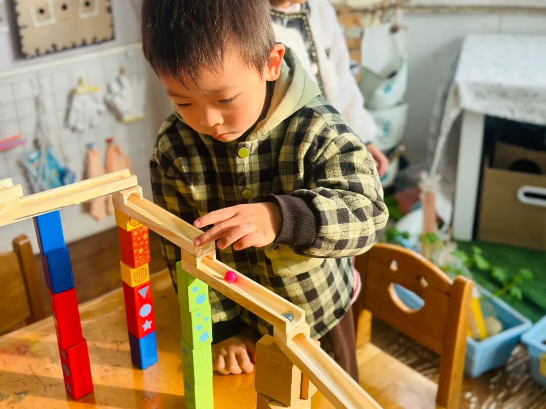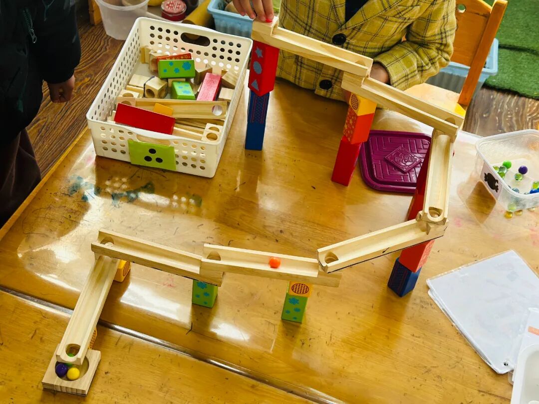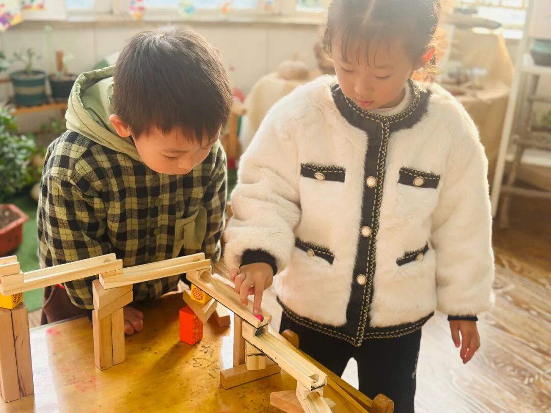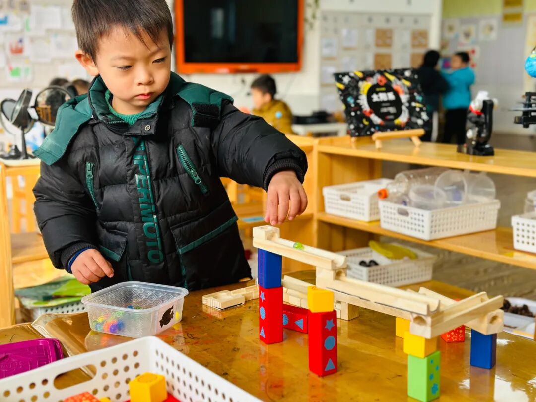对于孩子们来说,区域自主游戏“把游戏还给孩子,让游戏成为真游戏”是符合幼儿身心发展的自主且快乐的活动,孩子们在游戏中通过出现问题后,能通过自己探索解决,或同伴、或互相帮助等各种办法,在宽松自由互动的游戏环境和积极主动的游戏操作中玩中学。近期科学区区域材料新投放了材料“滚珠轨道”,幼儿对于科学区投放的轨道滚珠充满了兴趣,他们组装轨道,探索小球从轨道内滚落出来。为了更直观地观看球的滚动轨迹,进一步探索,孩子们对于这个材料有很多新奇的想法:小球会顺利滚到终点吗?它会按照预定设想前进吗?孩子们会如何对其进行探索呢?我们一起来看一看吧。 搭建轨道