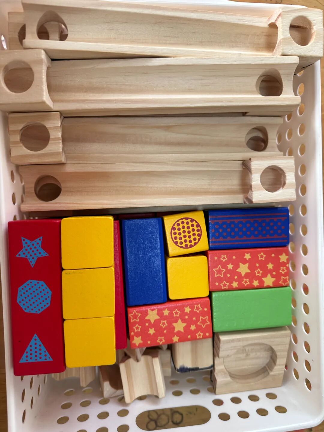 教师:除了材料盒里的积木,我们利用别的材料来搭建轨道吗?