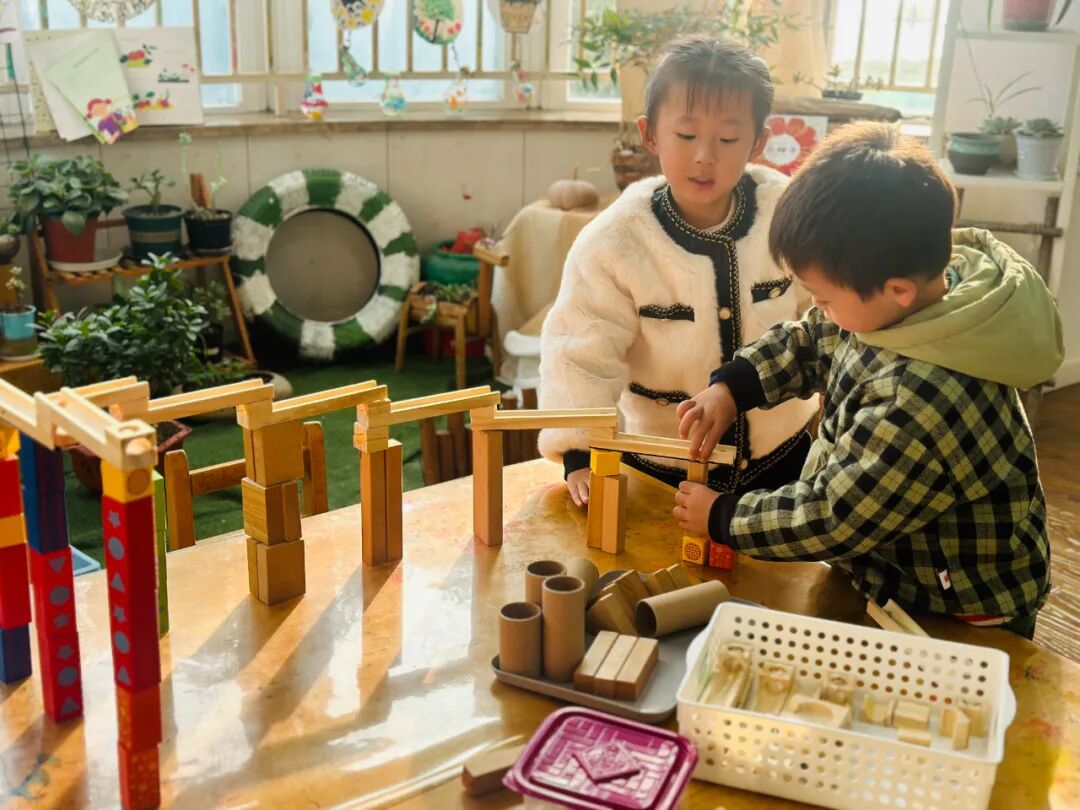 我和万艺欣今天搭建了高楼轨道,我们一开始用建构区的三角形积木和方形积木搭建轨道,但是调整轨道位置的时候,手一碰轨道总是会倒,然后就用了卷纸芯桶搭建轨道,轨道没有倒,滚珠也到达终点了。 ——储一灿1.《指南》健康领域指出,4—5岁幼儿能保持愉快的情绪:储一灿在同伴碰倒积木后,没有发脾气、指责别人的不是,而是选择找到轨道倒塌的问题,从而解决问题。2.《指南》科学领域指出,幼儿科学学习的核心是激发探究欲望,培养探究能力:储一灿通过观察、比较、操作,学会发现问题、分析问题和解决问题,不断的累计游戏经验。在调整轨道时,手一触碰到轨道就会倒,储一灿考虑到可能是支撑轨道的积木不够稳定,从而选择更换材料支撑;在搭建完成之后,滚珠滚动到最后一段轨道停住时,他能快速的发现是轨道不光滑阻碍了小球前进的问题,从而更换光滑的轨道。1.教师将幼儿在搭建轨道过程中积极动脑思考、解决问题的行为,在游戏分享环节时给予鼓励和肯定。2.材料调整:除了整套的轨道材料、积木、卷纸芯,教师还可以为幼儿提供一些开放性的材料,如生活中可用作轨道的材料、二次利用的材料、教室的桌椅等,鼓励幼儿借助开放性的材料设计一些特别的轨道。