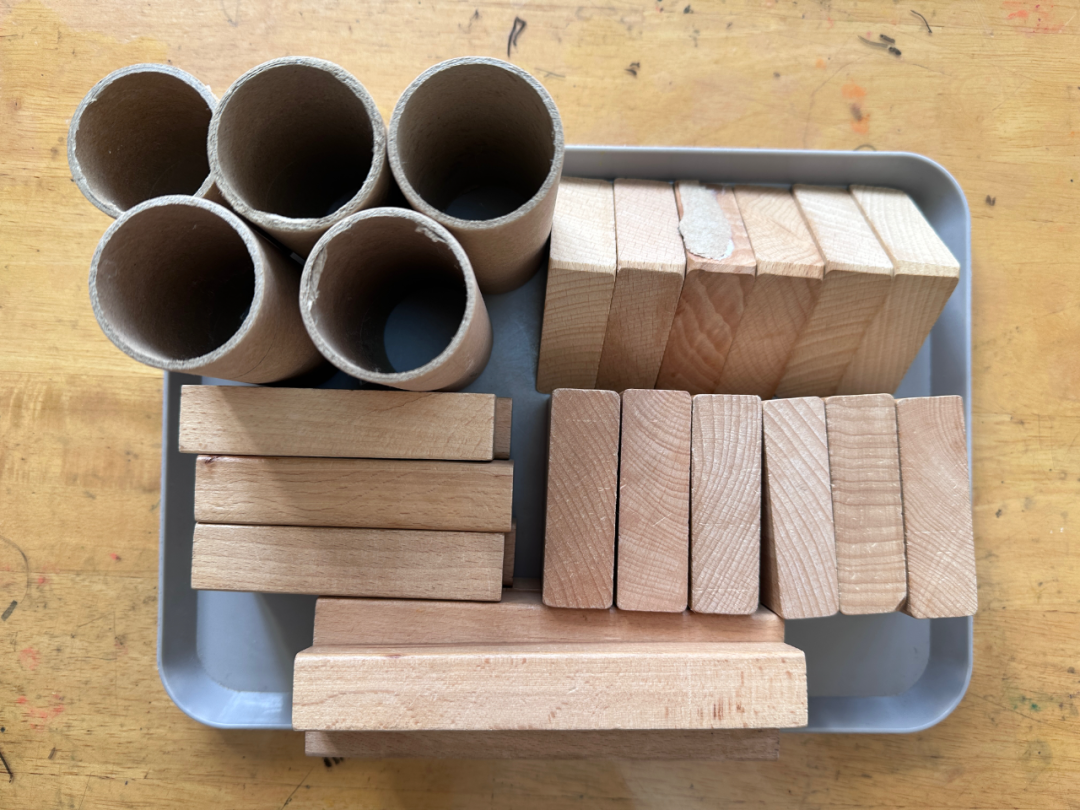 林婉怡:建构区里的长方形积木、三角形积木都可以用。