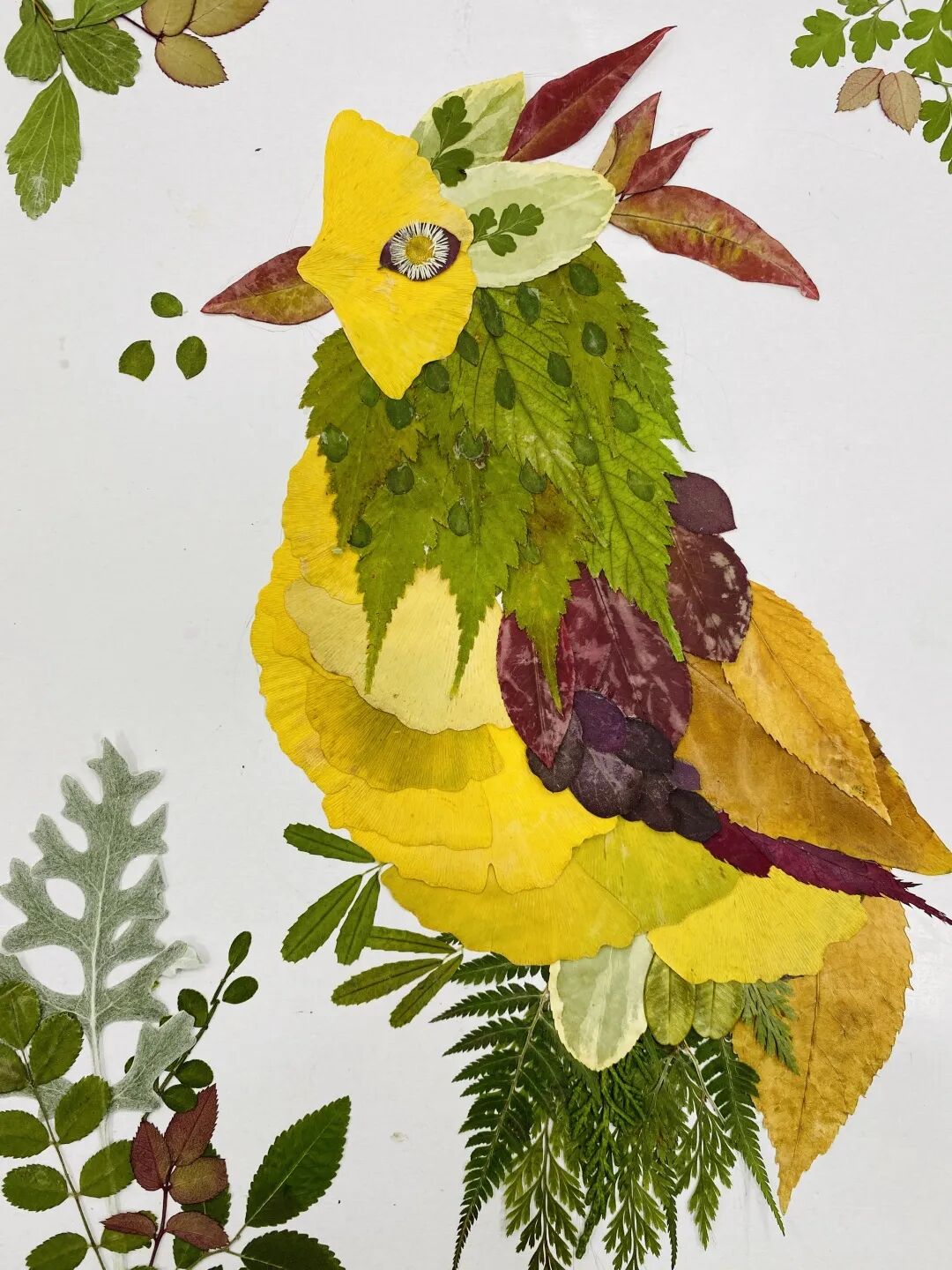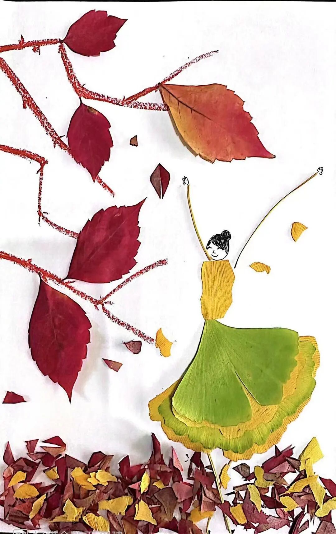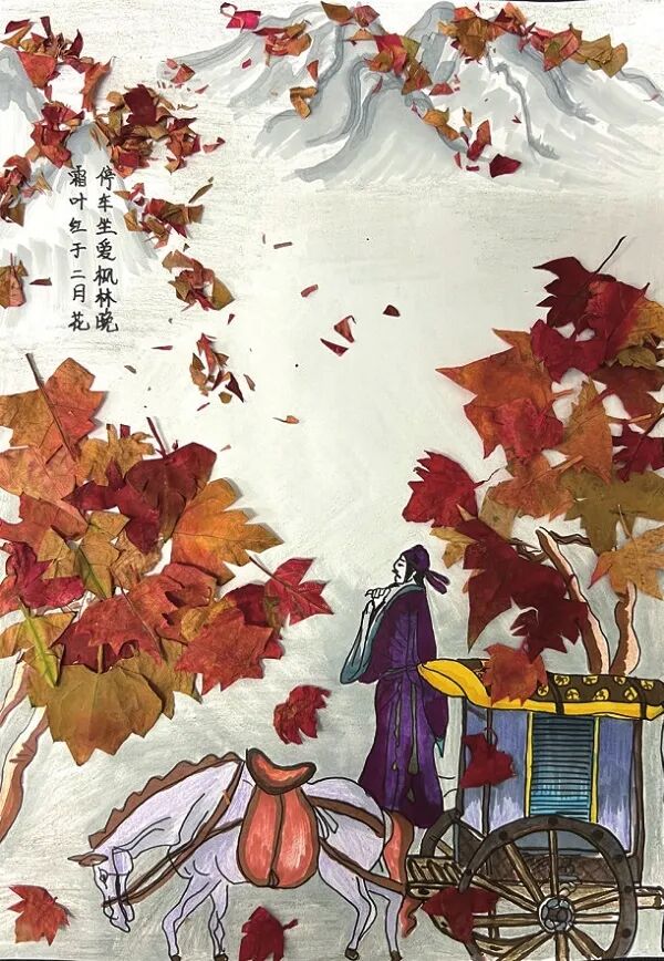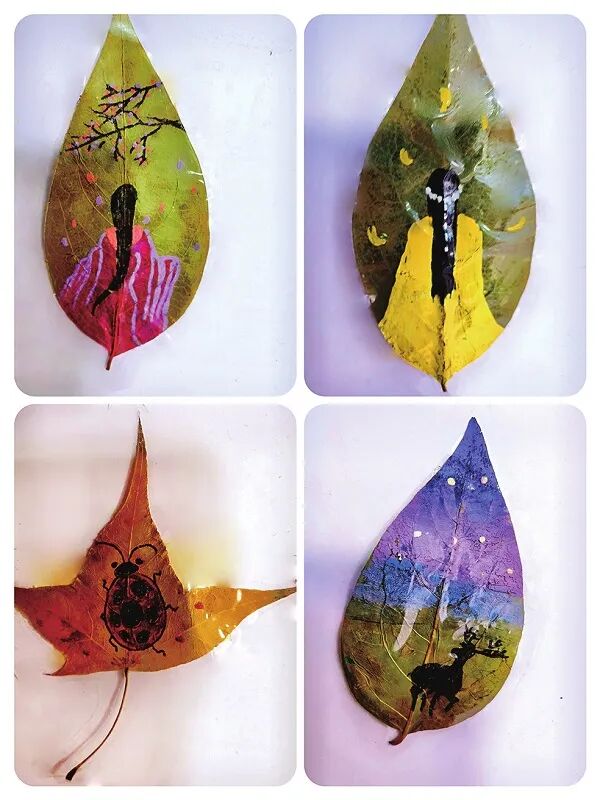 ↑ 点击上方“现代教育报”即可关注我们 裙摆及地,犹如霓裳羽衣 近日,浙江金华 家人用落叶给 小女孩做的“孔雀衣” 惊艳众多网友 “色彩来自大自然的调色盘” “有爱又有创意的一家人” “二创”大自然的美 “孔雀衣”上的每一片落叶 都是一段难忘的回忆 小画师们 也拾起落叶 用想象力去创作叶子画, 1.雨中行 康译心(东城区前门小学) 辅导教师:王然 2.山行 曹沁涵(大兴区第五小学) 辅导教师:靳丽丽 3.树叶涂鸦书签 宋昱杉(北京市顺义区建新小学) 辅导教师:王关欣 李小蕾 4.秋日的小松鼠 姚宛彤(第一七一中学附属青年湖小学) 辅导教师:李雪飞 5.猫头鹰 马恩慧(北京市古城中学) 辅导教师:马卫红 6.舞蹈精灵 牛可欣(北京市昌平区回龙观第二小学) 辅导教师:吴玉红 7.秋之舞 刘静依(北京市朝阳区白家庄小学珑玺校区) 辅导教师:胡杨 8.独钓一江秋 付润欣(东城区板厂小学) 辅导教师:陈卓 9.水中世界 王宇彤(北京教育学院附属大兴实验小学) 辅导教师:胡剑 10.小动物的秋日聚会 文鑫玉(北京理工大学幼儿园) 辅导教师:王文然 11.荷塘 孙鹤轩(通州区贡院小学徐辛庄校区) 辅导教师:吴凡 12.秋日少女 崔瑞雪(北京市陈经纶中学崇实分校) 辅导教师:张佳杰 13.穿雨衣的小朋友 王沐晴(北京印刷学院附属小学) 辅导教师:何佳璐 14.把秋天装进篮子里 汪小涵(昌平区城关小学) 辅导教师:高晗 15.秋雨 牛放 (大兴区黄村镇第一中心小学) 辅导教师:龚娟 16.美丽的鸟儿 张金蕾(北京市海淀区清华东路小学) 辅导教师:王丽庆 17.孔雀 高佳嫤唯(昌平区回龙观中心小学) 辅导教师:阚莹 18.园丁的快乐 牛梓萌(北京教育学院丰台分院附属学校) 辅导教师:蒋一闻 孙存 东城区西中街小学美术教师 东城区小学美术学科带头人 用心选材是第一步。叶子的种类很多,造型各异,色彩丰富。在选材时,不要只局限于树叶,我们还可以选择花叶草叶等。尽量选择不同的树叶造型,例如我们常见的五角的枫叶、椭圆形的石榴叶、半圆形的枫树叶等。在叶子的色彩及大小上都要顾及全面,保证创作时的材料充足。 细心备材是关键的一步。拾回来的叶子或是质感潮湿或是呈现立体状态,是不能直接入画的,否则在粘贴叶子时会增加难度,待画作上的叶子枯萎时也容易破碎,不易保存。如何做出美观的叶子画呢?我们需要将叶子夹在厚书中压平。待叶子平整,水分适中后将其平放在桌面上备用。另外,叶画的背纸准备也是很有讲究的。纸张过软不利于叶画的保存,涂抹乳胶也容易变形。所以要选择有一定厚度的卡纸,不易褶皱也不易变形。 精心创作是实现艺术创想的一步。叶画的表现题材非常广泛,可以是人物、动物,也可以是景物。我们可以将叶片作为原材料进行创作,也可以把它当作画纸在上面作画。如果是运用叶片做原材料,在构思时,首先要充分利用叶片的各种造型塑造自己想要表现的主体事物特征。建议同学们可以运用叠加和组合的方法去尝试创作。由于叶片造型各异,所以即使塑造同样的动物或人物,运用多片叶子叠加或组合的方法,也可以幻化出多种造型特征,让画面充满生趣。其次,可以选择与主体色差较大的叶片对拼摆好的人物或动物进行背景塑造及花纹装饰,让画面更有层次感和装饰意味。构图完成后,用乳胶均匀地涂抹在叶片背面进行粘贴就完成了一幅美丽的叶画创作。如果是用叶子作为画纸,我们可以选择较为宽大的叶片,运用水粉颜料、丙烯颜料等绘画工具,在叶片上进行绘画创作,这样的叶画作品清新灵动带着自然的色彩。秋叶翩翩入画来,在画作中留住秋日的美好吧。 部分素材来源:央视新闻 策划:王小艾 编辑:张秋颖 编审:郝彬 终审:王宇 苏金柱