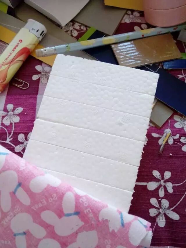 按照格子的大小裁一块泡沫,划上几道口子,注意不要划到底。