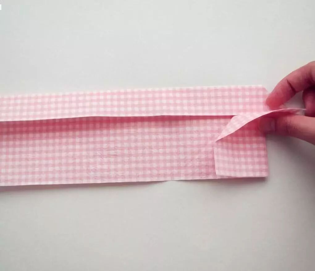 将上面1/4长条向下折