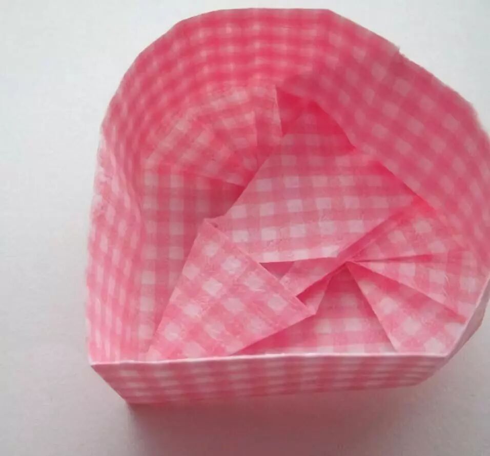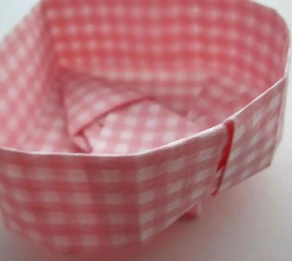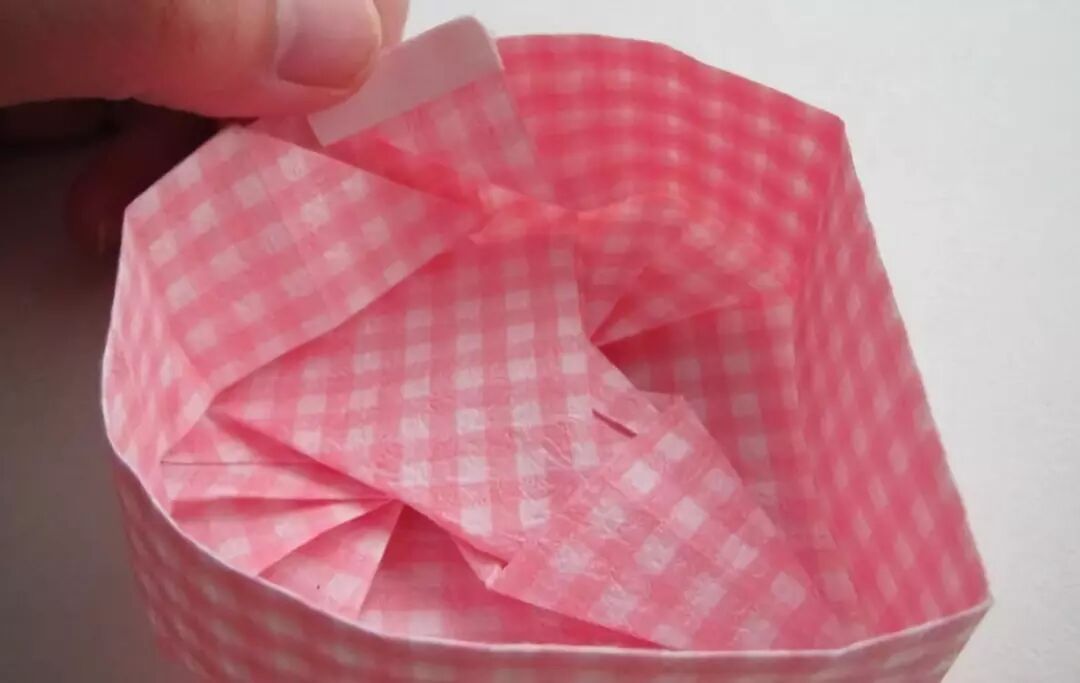 将背面上方的角向里凹进,这样一个精致的小盒子就做好了,可以放首饰也可以当做摆设,都非常好看哦~而且粉色充满了少女心~