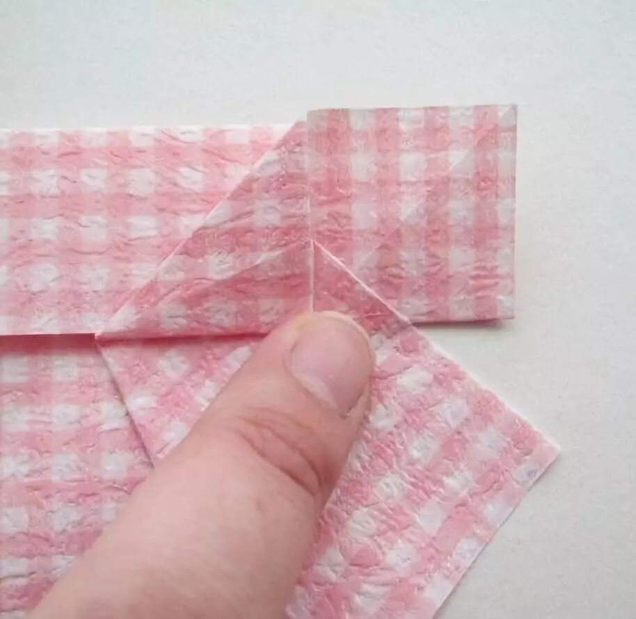 中间形成的三角形压向一边,再将上边对其中线压折
