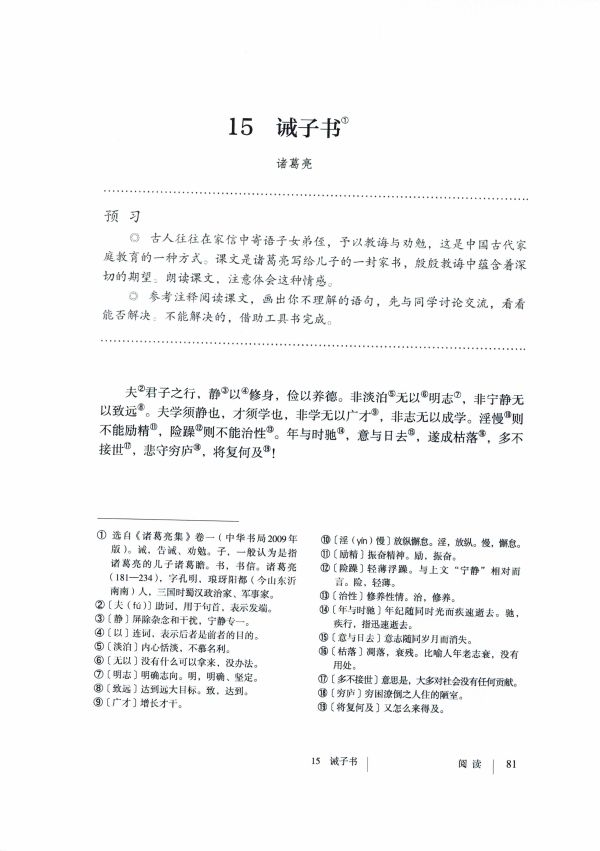 诫子书预习第16课《诫子书》