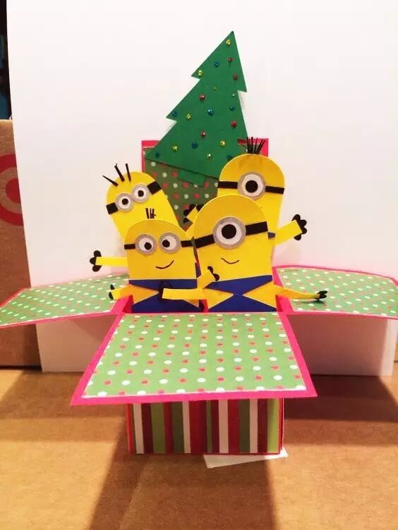 用卡纸做出来小黄人,让它们躲进化妆品盒里,让小伙伴打开有一个惊喜吧~