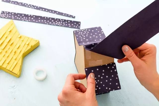 彩纸装饰一个异形盒子,加以装饰,做成礼品盒不但好看还很有创意。