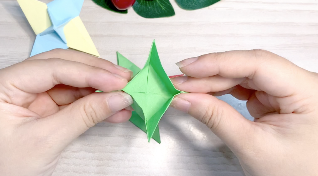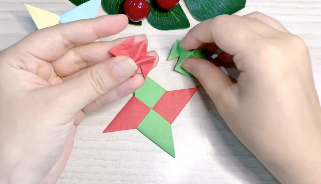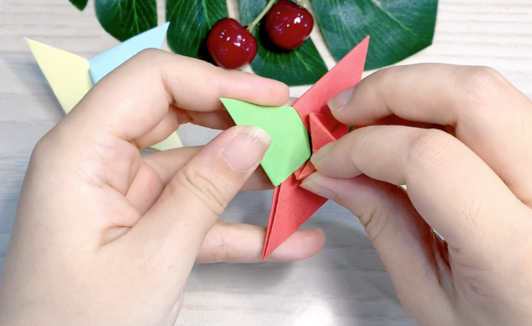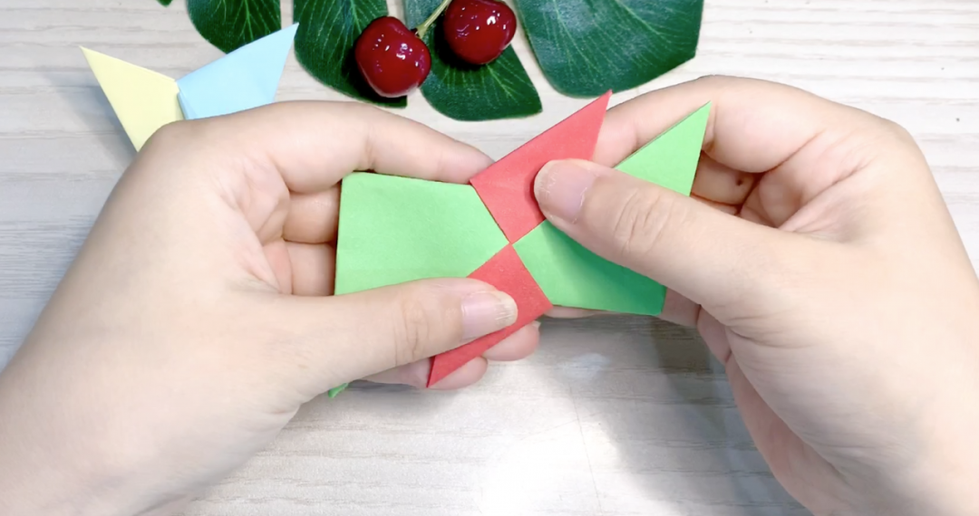 准备材料: 彩纸、剪刀 正方形卡纸对半剪开,再横向对折。 左边朝上折出三角形,右边朝下折出三角形。 左边再朝上折,右边再朝下折。 得此图形~ 红色卡纸则按绿色相反的方向折,左下右上。 红色卡纸中间有开口的朝后,绿色卡纸中间有开口的朝前,两个垂直交叠在一起。 正反两面四边的三角向里折,并塞进开口里。 变成飞镖的形状。 将第一步剪剩的另一半再剪一半成正方形。 折出“米”字折痕。 四角向中心折。 两边横向折成长方形,展开后另外两边也这样折。 展开后捏住四边的角,沿刚才的折痕折出风车状。 反过来四角向中心折,凸出的三角向左折。 另外一个同样的方法,凸出的三角向右折。 按方向卡进卡口。 一枚酷炫小陀螺就做好啦!快转起来吧! 是不是很简单?快做一枚玩起来吧! 卡梅拉攻略 解读卡梅拉故事里的所有典故和知识点,看了才知道这套绘本原来是套隐藏的小百科! 卡梅拉系列丛书将历史典故、神话传说融合进卡梅拉的故事里进行重新演绎,致敬经典;将文化注入孩子的灵魂,让孩子在美的熏染中完成对经典的解读。 每本书都隐藏着很多知识点,如同把孩子和世界联系起来的桥梁,是世界人文这部巨著中的一枚枚书签,把历史文化的细珠碎玉串成一串串璀璨的项链。![]()