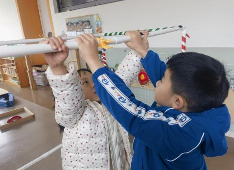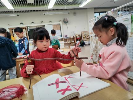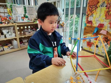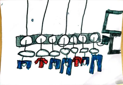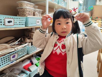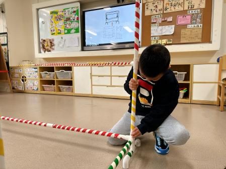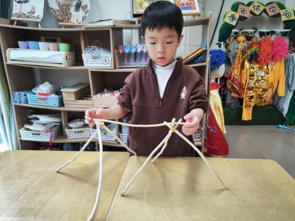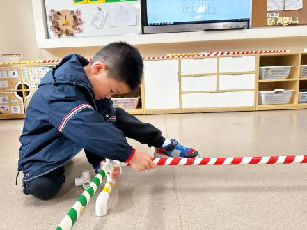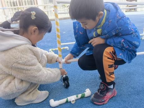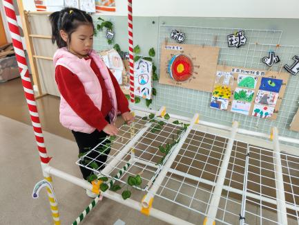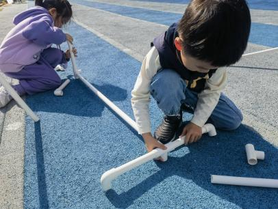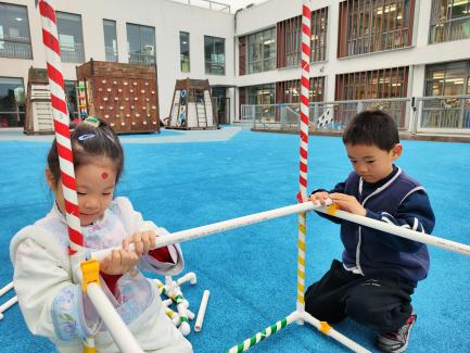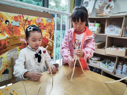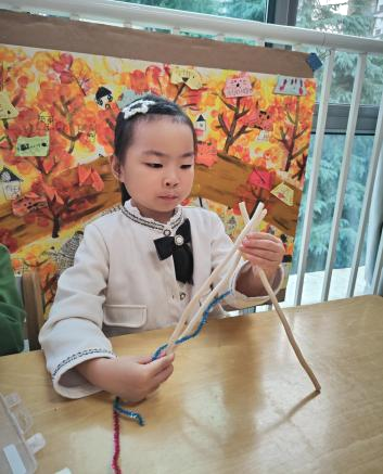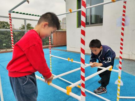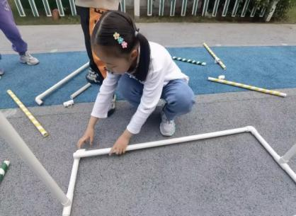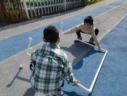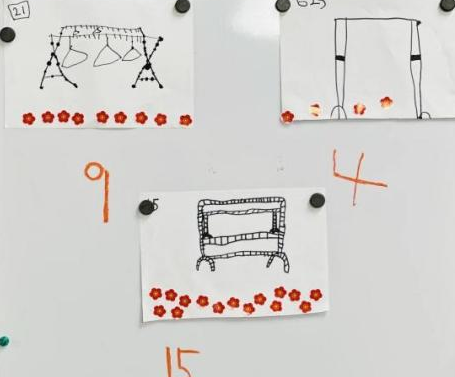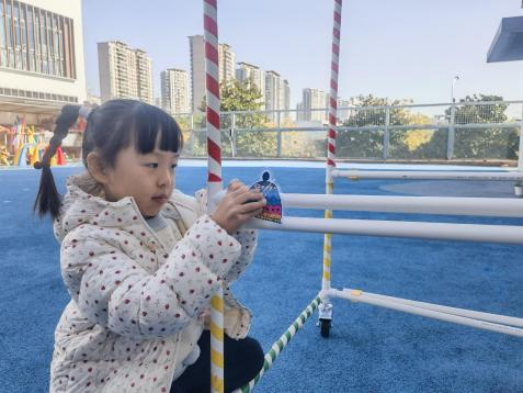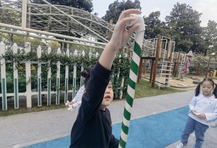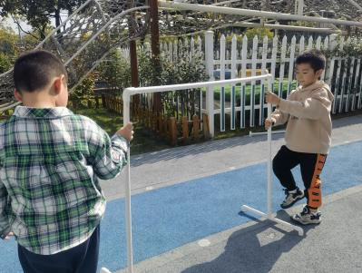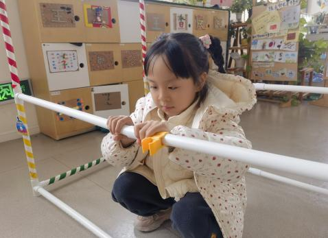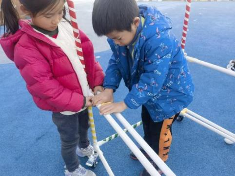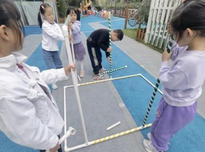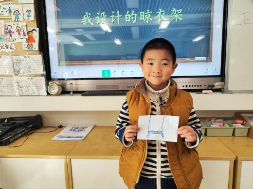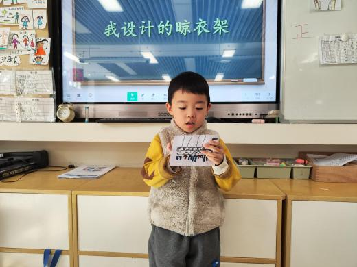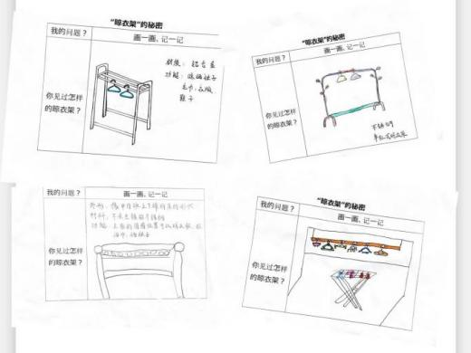 户外晾衣架DIY ——东区大一班、大二班、大四班联合班本探究活动 问题的缘起 随着天气转凉,孩子们穿的衣物越来越多,为了方便户外活动衣物的收放,每个班级都配了一个放衣服的筐,但是随着孩子们衣物量的增多,筐里每次都被塞得满满当当,班里两个衣篮已经不够放下孩子们的衣服了。经常有衣服散落在衣篮旁边,每当孩子们想穿外套时,衣篮里常很难找到自己的衣服。 如何才能解决这个问题?孩子们萌发了自己手动搭晾衣架的想法。快来听听他们怎么说: 我们可以挂在大舞台的衣架上。 都挂满了,挂不下了。 要是再有几个晾衣架就好了! 我们可以自己搭呀! 乐乐的主意引起了小伙伴们的强烈反响,可是晾衣架用什么材料搭呢?该怎么搭?机敏的孩子们发现:区域里“小小实验室”或许有组装的材料,是否可以用来搭建晾衣架呢?于是,关于晾衣架的DIY探索之旅开始了! 晾衣架DIY大行动 01 晾衣架大探秘 在团讨活动中,孩子们纷纷提出自己家里也有晾衣架:电动的、手摇的、落地的,悬挂的......妈妈会用衣架晒被子、晒衣服和袜子等等。为了拓展幼儿对晾衣架的更多认识,也为之后搭建晾衣架积累经验,我们请孩子们化身“小小调查员”,开展了《寻找家里的晾衣架》调查,发现并了解晾衣架的多元认知。 通过调查孩子们发现:晾衣架有各种造型款式:有像幼儿园一样的一杆晾衣架、有左右平行或上下平行的三杆晾衣架、有很多格子组成的多杆晾衣架,还有高高的直杆晾衣架;他们还发现晾衣架的功能也不同:如长长的一杆晾衣架,大人们常会用来晾晒床单、被子、多格晾衣架一般会挂毛巾、袜子等小物件、直杆晾衣架,可以随手挂外套、包包、围巾等。小小调查员们还惊喜地发现:晾衣架的材质也五花八门:有不锈钢的、有塑料的、有木质等等...... 02 拼拼搭搭晾衣架模型 在了解了晾衣架的各种款式功能后,孩子们和爸爸妈妈一起亲子设计了自制晾衣架设计图,通过资料查阅,孩子们进一步了解到晾衣架基本结构由挂衣杆、支撑杆组成,在班级里,大家你一言我一语地介绍起来了。 通过深入的调查和研究后,孩子们对搭建晾衣架的款式和所需材料也有了更深入的了解。于是,他们在班级材料区寻找可用于搭建晾衣架的材料:冰棒棍、一次性竹筷、树枝、毛根等,同伴合作一起先从制作晾衣架模型开始吧。 在一系列动手动脑的实验尝试后,一个个造型各异的晾衣架模型纷纷登场,大家激动地交流起各自的作品:有的用一次性皮筋捆绑,有的用胶枪粘,有的用毛根缠绕,固定方法也各不相同:有的是方形格子、有的是平行三杆、有的两边交叉,造型结构各有特色。在亲身体验和勇敢尝试中,孩子们对于制作晾衣架的经验也日趋丰富。 左右滑动,查看更多··· 教师的思考 通过调查记录、实地观察,孩子们了解了晾衣架的基本结构、款式造型,搭建模型中要兼顾稳定性、牢固度、支持力等基本构建要求,探究活动中的一步步推动,需要参与幼儿具有共同建构逐步丰富经验,当我们发现幼儿经验缺失时,及时通过调查、分享、梳理、整合、持续拓展幼儿新经验的积累,始终保持并进一步激发幼儿好奇心和探究欲,引发深度学习的兴趣和行动。同时,关注活动中家园互助,将经验准备、认识交流等环节前置或融入于家庭亲子活动中,依托亲子互动、师幼互动、同伴互动等多通道学习路径,支持每个孩子都参与到探究活动中。 设计与尝试 ——自制晾衣架1.0 01 晾衣架初尝试 孩子们根据自己的想法绘制晾衣架的设计图,根据晾衣架的款式进行分类,有单杠式晾衣架、双杆式晾衣架和交叉式晾衣架。通过投票分小组的方式,开始了合作尝试搭建。 一杆晾衣架设计稿 问题一 晾衣架立不住怎么办? 因有过组装pvc管的经验,孩子们第一次搭建很顺利。在绘制图纸后,大家用一米管和弯头在地面连接出一杆晾衣架,用三通管连接底座,但当他们把晾衣架立起时,晾衣架却倒了,这是为什么呢?我提醒孩子们可以去研究一下表演区的不锈钢衣架。经过对比发现:不锈钢衣架的撑脚有两节且撑脚与衣杆呈90度直角状,而孩子们自制的只有一节,撑脚和衣杆方向一致,在游戏分享环节,大家纷纷来支招: 第二天,孩子们尝试了方法2,晾衣架成功立住了。 左右滑动,查看更多··· 我们的发现 这样的底座更稳固 在搭建一杆晾衣架过程中,泽泽将用于撑脚的4个弯头旋转放平,两边各用一根1米pvc管连接,形成了一个长方形的底座。孩子们都认为这样的底座更稳固,除此以外还有其他稳固的底座结构吗?他们探索出连接一杆、连接三杆等各种方法。底座的设计有了更多可能性,尝试中又找到了更多好办法,如:两个正方形连接,多加撑脚、多加立杆用于支撑稳固。在探究中还总结出了规律:底座的宽度要选用0.5米的pvc管最合适,太宽会让人无法进入衣架区。 问题二 晾衣架太长如何解决? 随着一杆晾衣架经验的积累,希希和多多“研发”了加长版一杆晾衣架:两根1米pvc管连接,这样就能挂更多衣服了。正当他们对自己的作品洋洋得意时,泽泽提出了不同意见:晾衣杆这么长,小朋友都无法行走了,能不能搭建出既能挂更多衣服又不阻碍小朋友活动的晾衣架呢?孩子们提出可以在一杆下再加一杆,于是他们开始尝试功能性更强的两杆晾衣架。 两杆晾衣架设计稿 设计多样化的造型 首先,孩子们根据之前设计的上下两杆的晾衣架图纸,可
