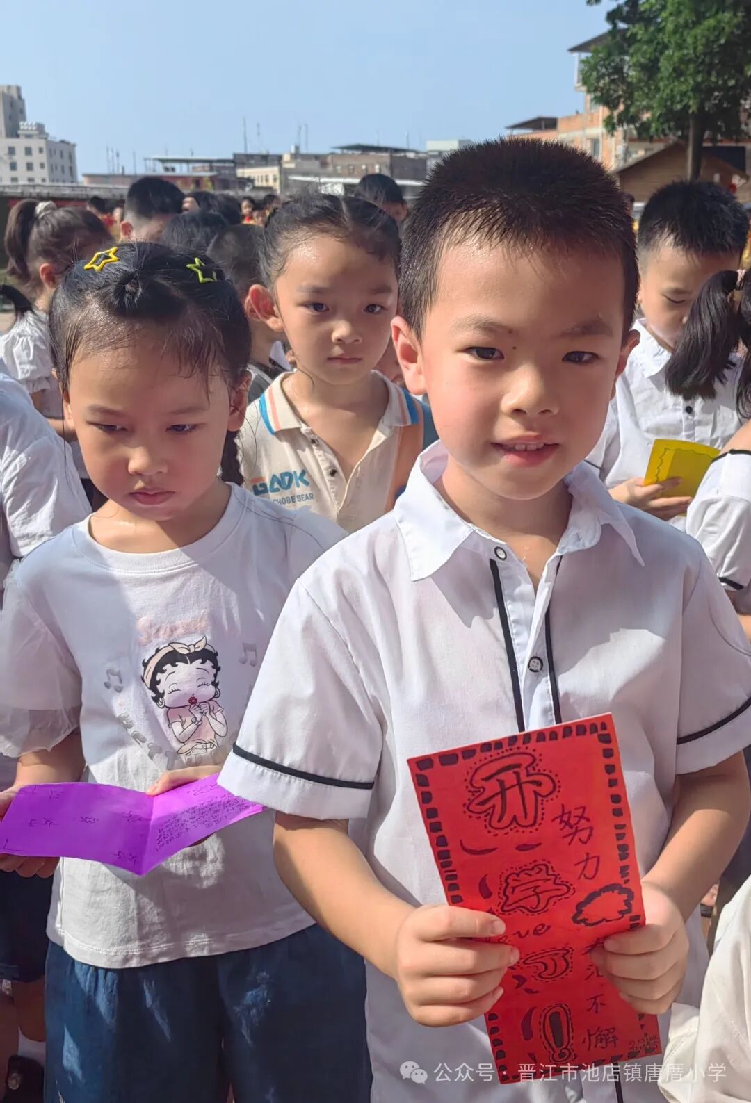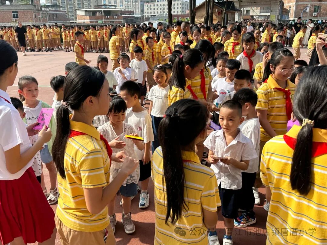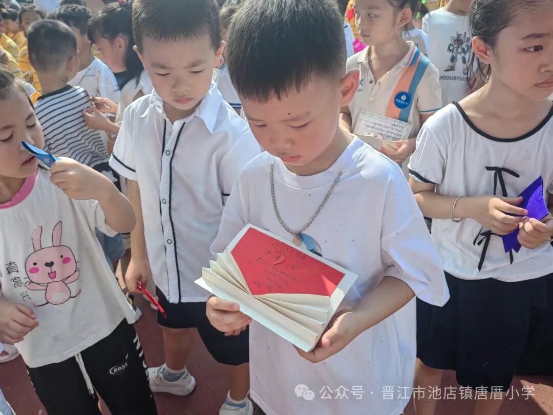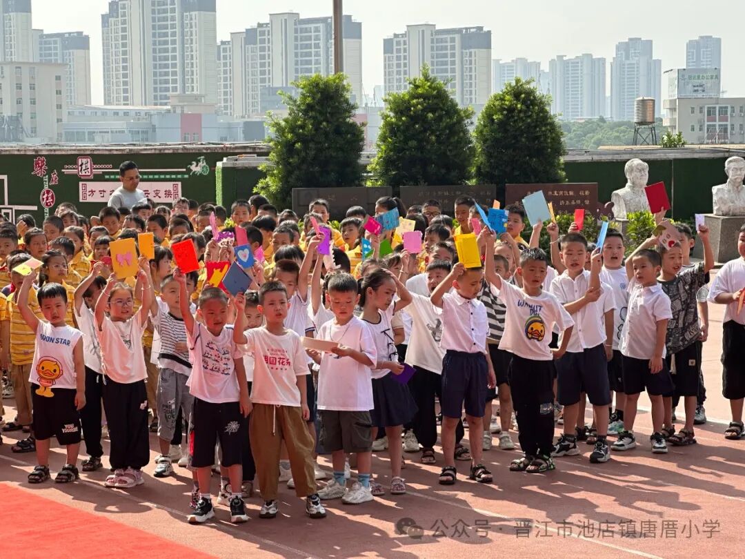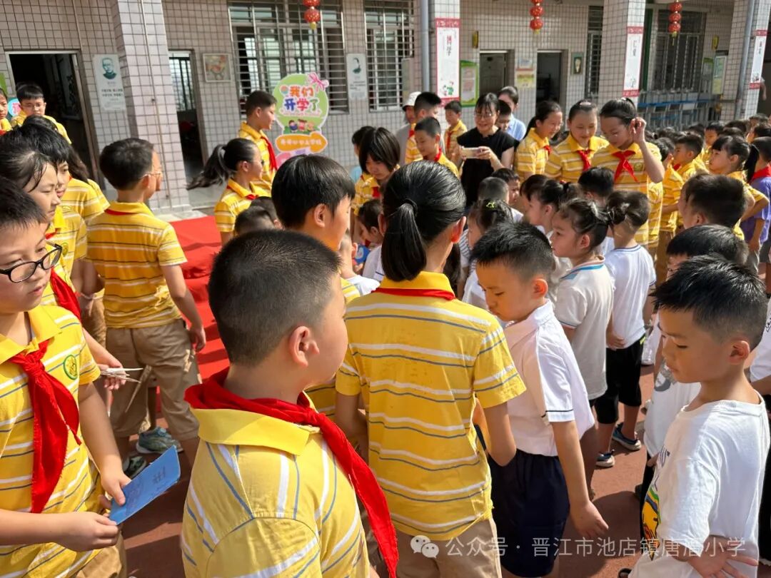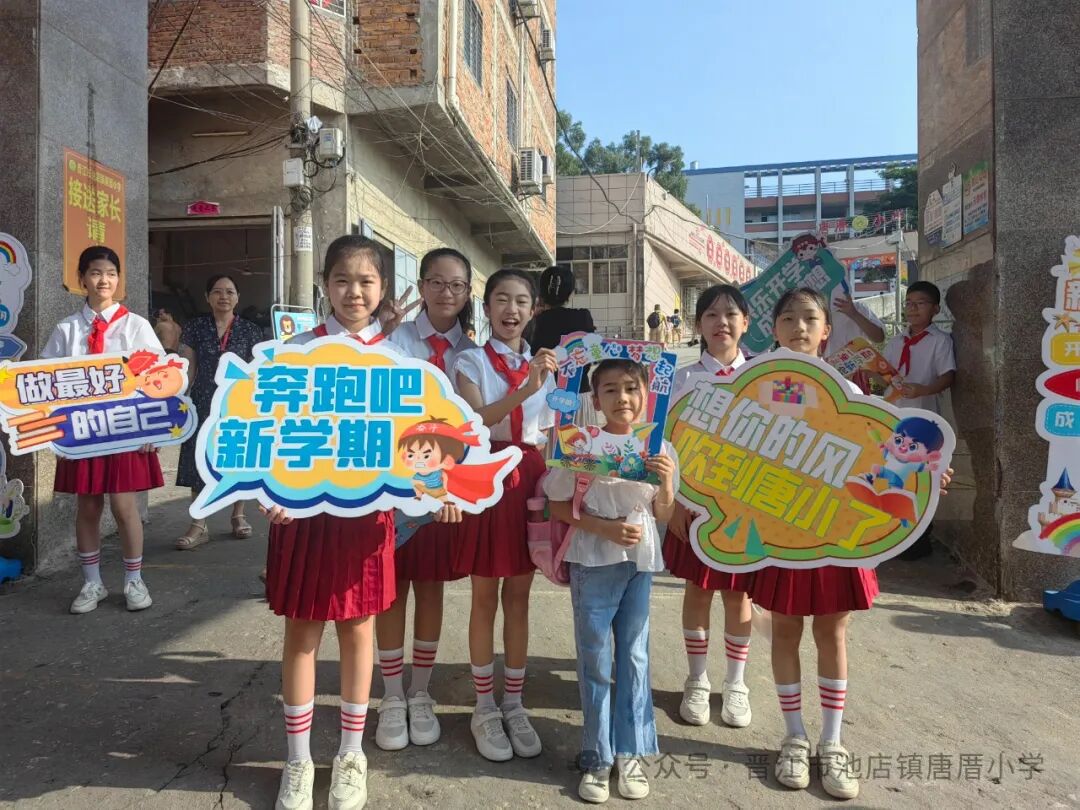 2024年9月2日 开学啦 TERM BEGINS 秋风送爽丹桂馥,书声琅琅新梦启。伴随着天高云淡的金秋,我们怀着共同的理想,带着对美好未来的憧憬,共同开启新学期新篇章。9月2日上午,唐厝小学全体师生相聚在美丽的校园,隆重举行“扬帆起航 做追梦好少年”开学典礼。 一、开学典礼前 学校领导、护导老师及大队委员早早地来到学校,热情迎接孩子们的到来。经过老师们的精心布置,校园处处充满着热情和期待,孩子们走进迎新门,也走进人生的新篇章。 一年级的教室内,校领导、老师们新生点朱砂于额头正中,寓意开启智慧,明心见性。 二、开学典礼时 1.升旗仪式 伴随着激昂的《义勇军进行曲》,鲜艳的五星红旗在全体师生的注目下冉冉升起,飘扬在学校的上空。 追梦起航 2.校长致辞 唐厝小学李雪玲校长为开幕式致辞。她从梦想与追求、学习与成长、团结与合作、责任与担当、安全与健康五个方面鼓励同学们要勇于青云直上,要敢于拼搏,用智慧和汗水书写自己的精彩篇章。 3.欢迎新生 六年级学生给一年级学生赠送祝福卡。小小的祝福卡承载着六年级哥哥姐姐们给弟弟妹妹们的美好祝愿。 4.互动活动:奥运精神我传承 (1)党员代表吴达玲老师以《努力做祖国和人民需要的好孩子》为题进行宣讲。她希望队员们能以奥运冠军为榜样,努力成长为爱党爱国、奋发向上的新时代好少年。 (2)奥运知识竞答环节将开学典礼推向了高潮。大队委提问,同学们抢答,一问一答间将爱国精神根植于孩子们的心中。 5.立下志向 展望未来 (1)节目《我们都有梦想》 孩子们用精彩的朗诵和舞蹈,表达了对祖国的热爱和为强国而努力学习的决心。 (2)制定新学年目标卡 孩子们在新学年目标卡上写下自己新学期的小目标,字里行间尽是对新学期的期盼。 开学典礼结束后,各中队分别进行开学第一课。各中队老师们以饱满的热情和生动的方式,对孩子们进行安全、文明礼仪、行为习惯等主题教育。 风华正茂心似火,拼搏进取无止境。祝愿唐厝小学的学子们在新的学期里不惧风雨,乘风破浪,于书山之上顾盼飒爽身姿,于学海之中见证时代辉煌。![]()