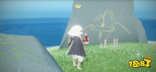飞到最大那个小岛上,发现一块巨大的石头下面有着一堆白蜡烛,点燃之后一副画面呈现在了巨石上。