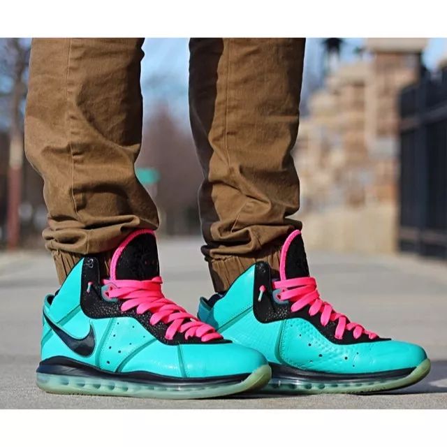 除了圣诞大战配色的LBJ8,当时全新的南海岸配色LBJ8也成为了经典。