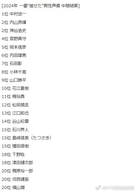 【2024 年最推荐的男声优排名】中间结果公开??