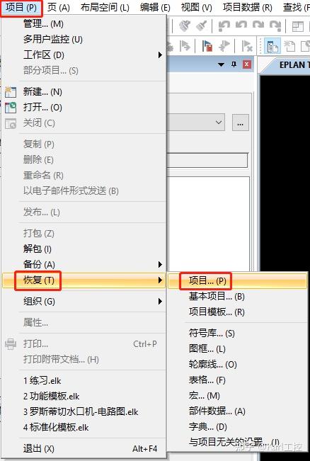 2)点击【项目】-【恢复】-【项目】